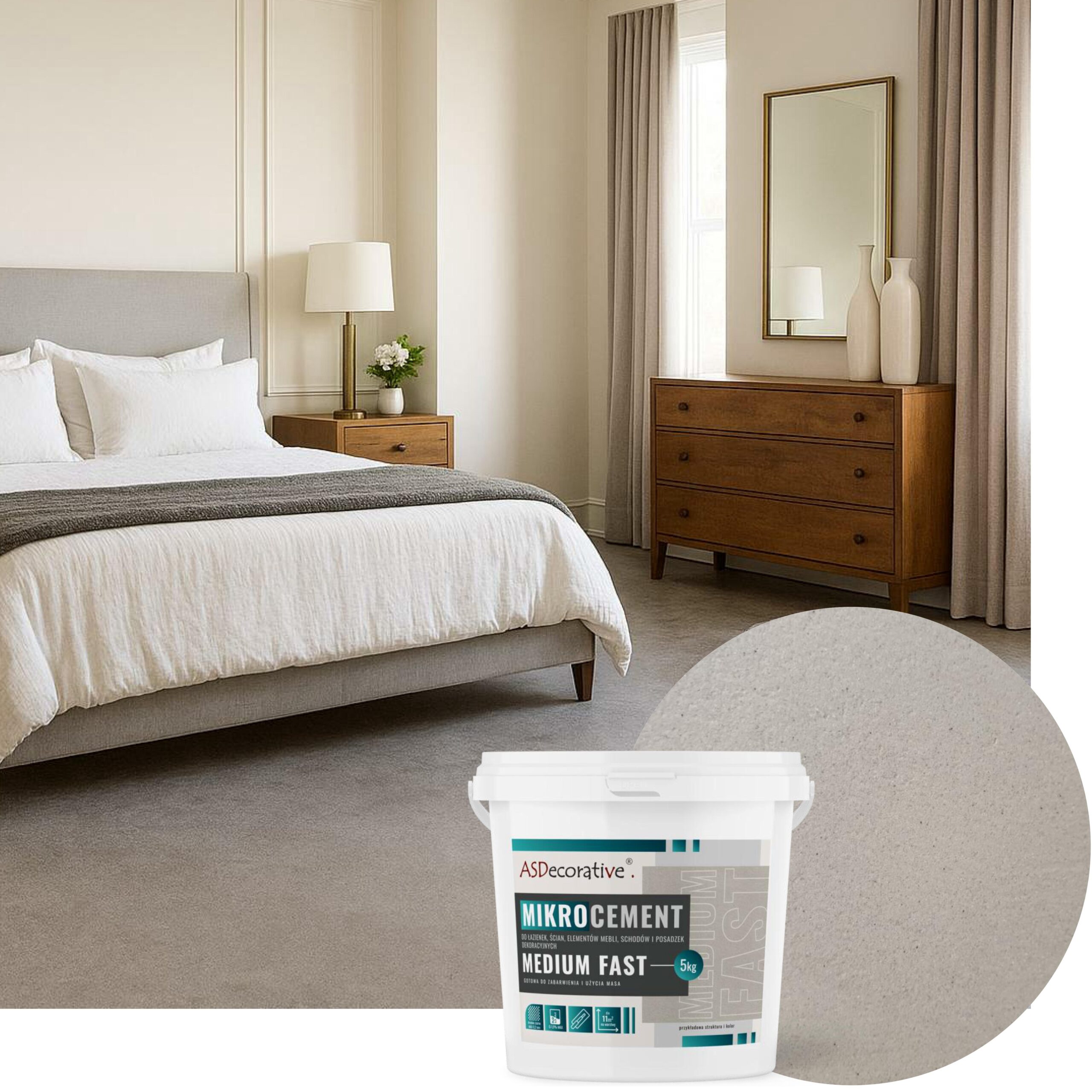 Mikrocement MEDIUM FAST to bardzo popularny gotowy do zabarwienia i użycia mikrocement z średnim ziarnem kruszywa, o niezwykle szerokim zakresie zastosowania.